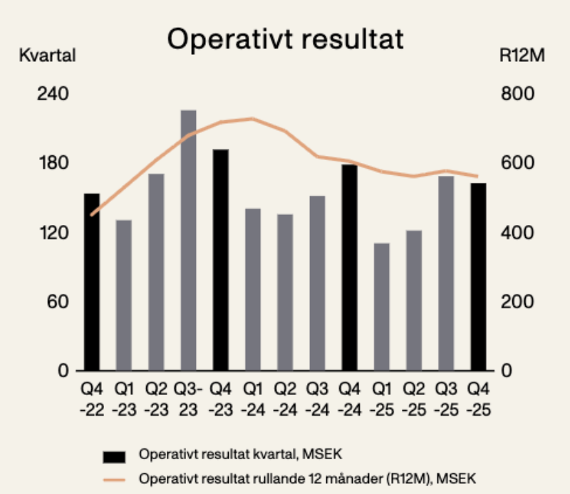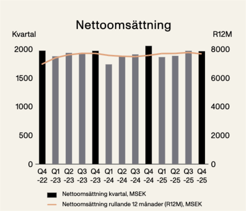 Helårsomsättningen ökade i relation till föregående år tack vare en stabil utveckling i förvärvade verksamheter. Omsättningen i årets sista kvartal viker dock i relation till föregående år då negativa effekter från en stärkt svensk krona och svagare efterfrågan slår igenom. Efter ett utmanande 2025 går vi in i 2026 med positiva effekter från både genomförda förvärv och beslutade effektiviseringsåtgärder.
